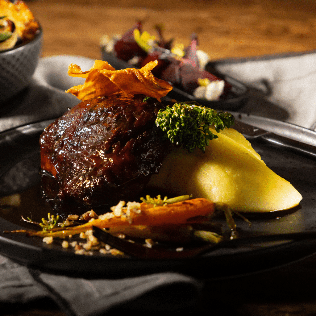 Slow-cooked products will surprise many a customer with their taste. Beef cheeks in the classic version served with butter puree accompanied by beetroot and carrots.