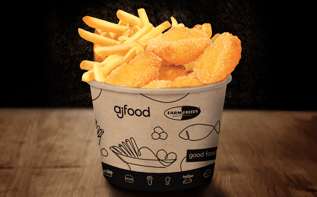 The perfect bucket packs to take away! Crispy breaded chicken nuggets served with fries.