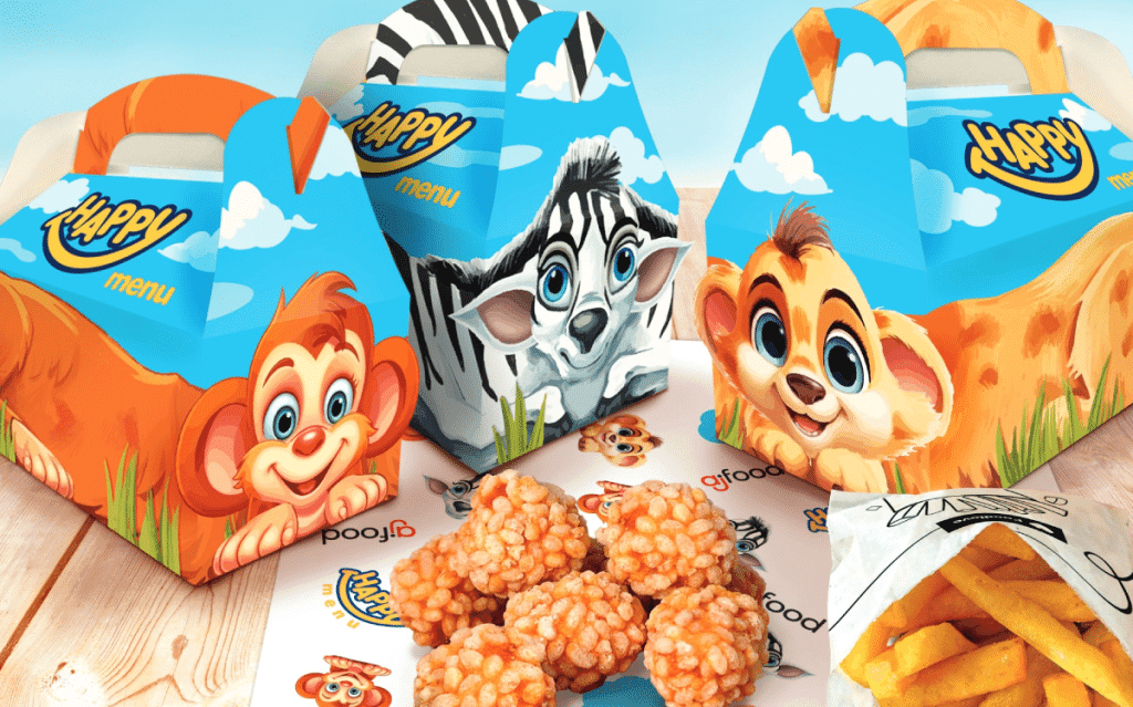 Compose a set for the youngest gourmets. The animal-shaped cardboard box is ideal for serving the set with pops and chips.