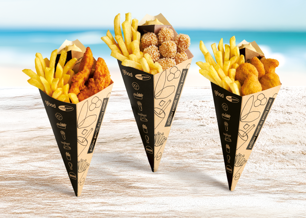 Sets that you can take anywhere! Crispy chicken strips served with fries in a convenient cone.