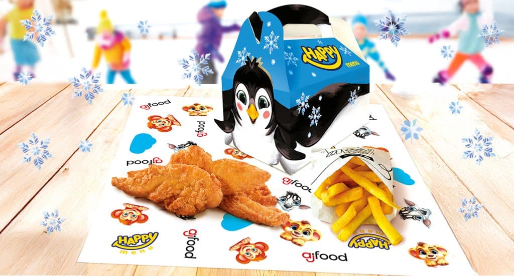 Compose a set for the youngest gourmets. The animal-shaped cardboard box is ideal for serving the set with strips and chips.