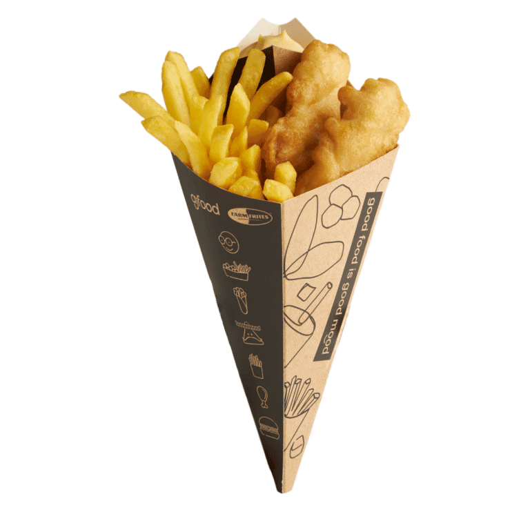 Sets that you can take anywhere! Crispy chicken strips served with fries in a convenient cone.