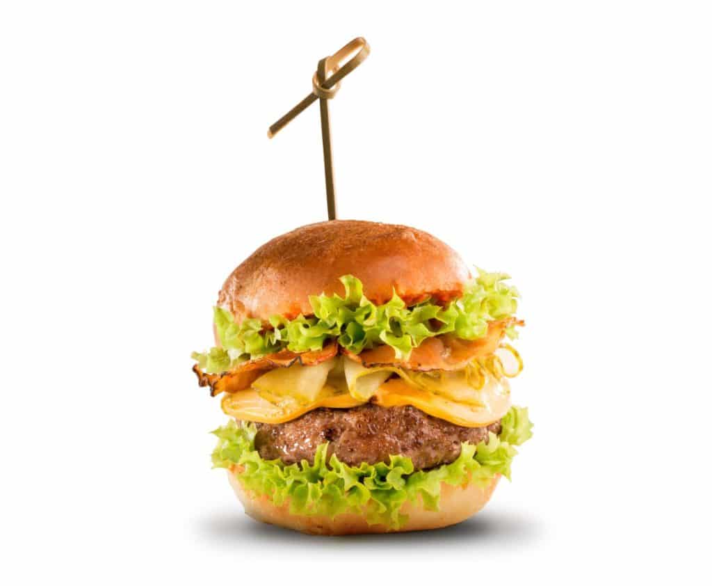 Burger in a new smaller version! Juicy beef composed with bacon, cheese and vegetables. All finished with sauce.