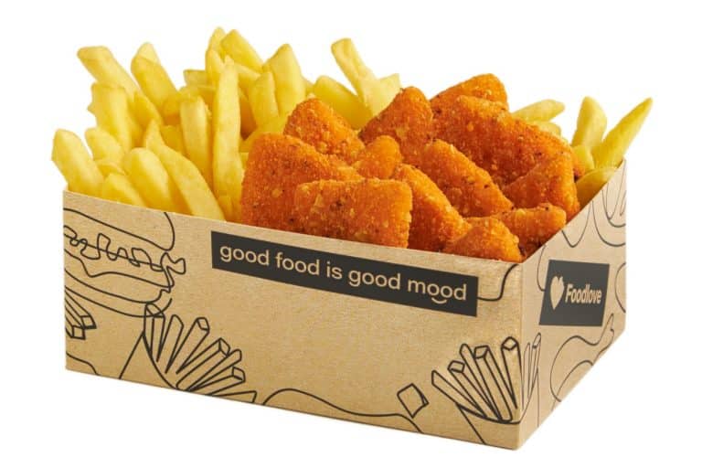 Bigger sets for bigger appetites! A megabox carton with pieces of white fish in beer batter and fries