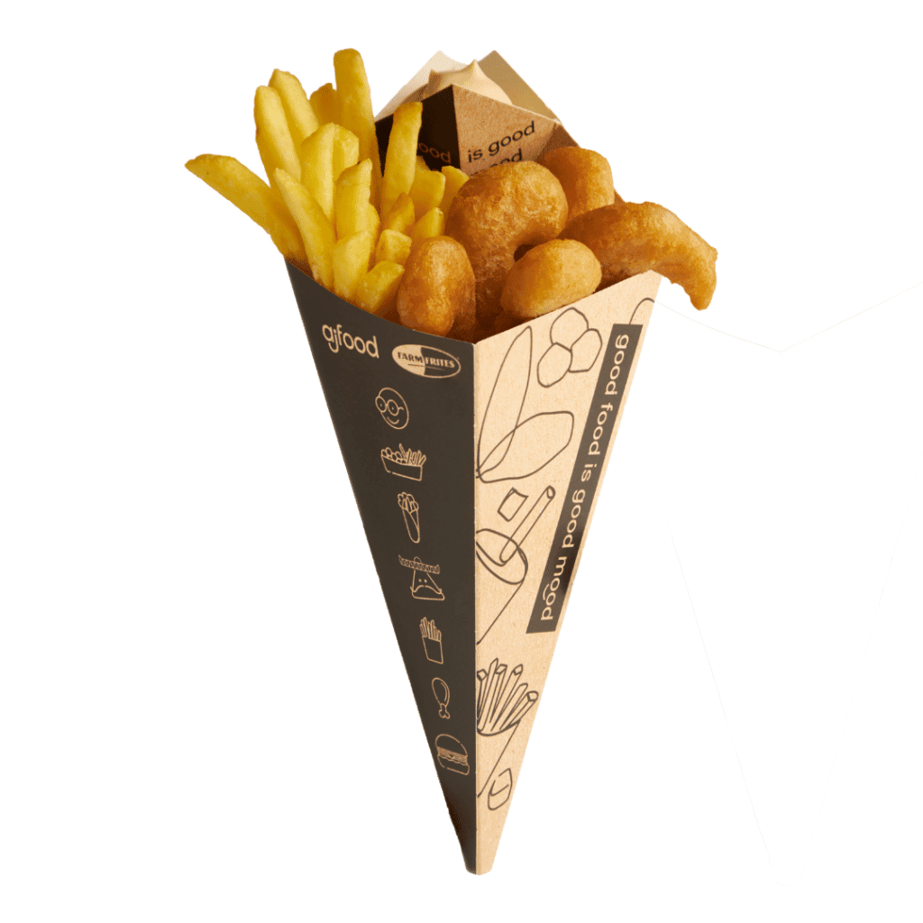 Sets that you can take anywhere! Shrimp in batter served with crispy fries in a convenient cone with room for sauce.