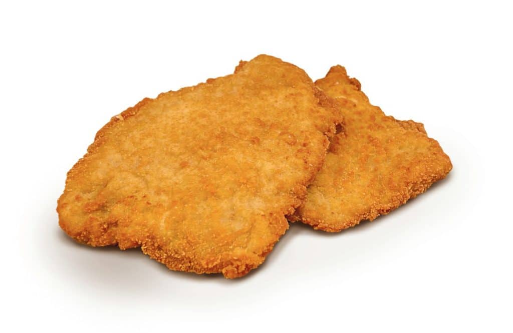 Pork chops made from a whole, broken-up slice of boneless pork loin. Hand-prepared and appetisingly coated in a traditional golden breading. Simplicity in a masterly rendition.