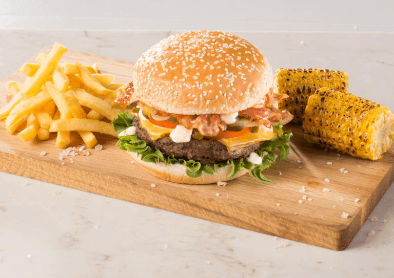 Tradycyjny burger wołowy w serowej wersji! Soczysta wołowina w połączeniu z warzywami oraz sosami zamknięte w bułce. Wszystko oblane gorącym sosem serowym i podane z frytkami. Serowe szaleństwo nie tylko w zimę!