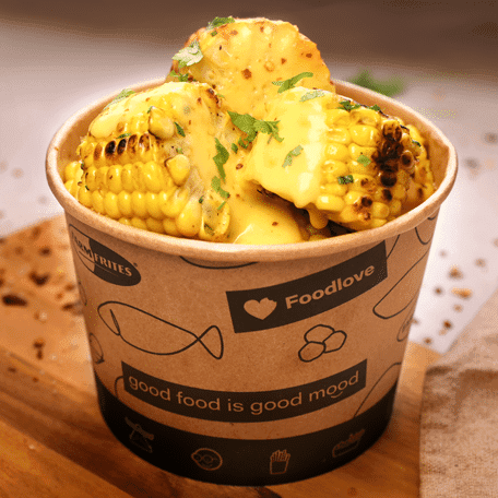 | Przed serwisem burgera polej burgera podgrzanym sosem serowym. |