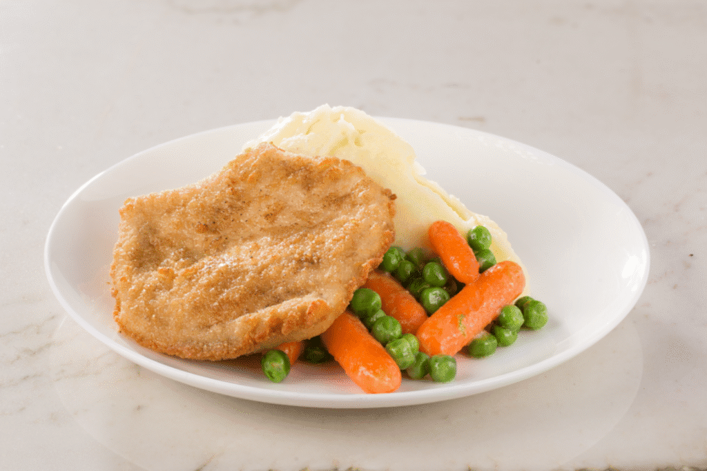 / Filet z kurczaka 100 g z purée i marchewką z groszkiem