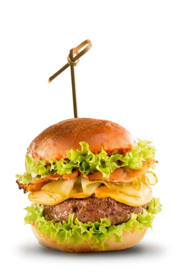 Burger w nowej mniejszej wersji! Soczyste mięso wołowe skomponowane z bekonem, serem i warzywami. Wszystko wykończone sosem.