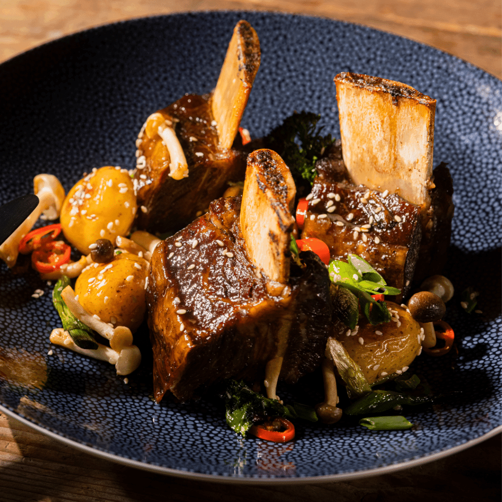 Produkty wolno gotowane zaskoczą smakiem niejednego klienta. Zebra wołowe podane w stylu azjatyckim w towarzystwie ziemniaków oraz warzyw.