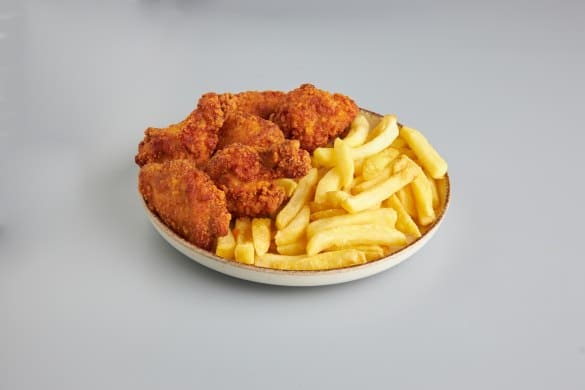 Skrzydełka panierowane z frytkami na talerzu_zdjęcie_46