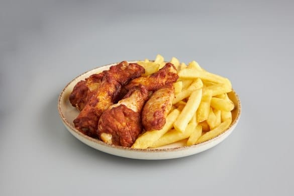 Skrzydełka pikantne z frytkami na talerzu_zdjęcie_66